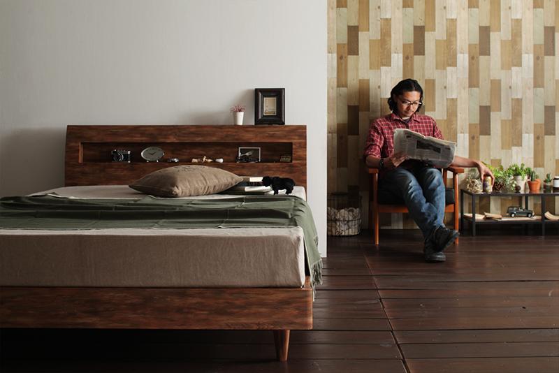 ベッド シングル ローベッド ロータイプ 低い フロアベッド 低床 宮付き ヘッドボード 枕元 棚 携帯 スマホ ティッシュ メガネ リモコン ラック ライト 読書 コンセント 充電 木製 北欧 高級 おしゃれ モダン ヴィンテージ メンズ 照明 読書灯 収納