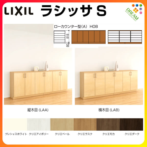 下駄箱 シューズボックス 玄関収納 リクシル ラシッサS ローカウンター型(A) H08 間口2400×高さ898×奥行400mm フロート/台輪納まり 扉付き 組立式 靴箱 リフォーム DIY kenzai