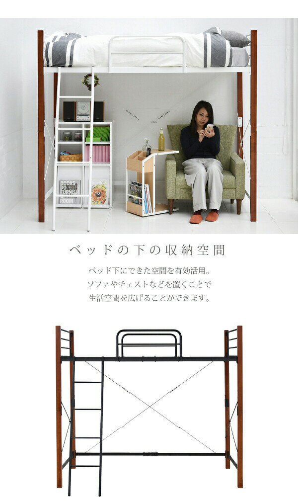天然木脚 ロフトベッド シングル パイプベッド ロフト 高さ 183 長さ 209 木製式ベッド 天然木 頑丈 丈夫 有効活用 新生活 インテリア 極太