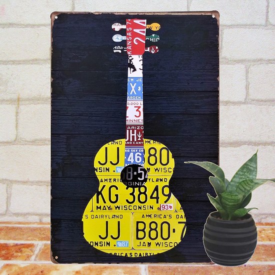 ブリキ看板 ナンバープレート ギター ウィスコンシン州 ポスター 自動車 アメ車 ガレージ インテリア 車庫 アメリカン雑貨 男前 絵画 モダン 一人暮らし 店舗用 ポイント消化 メール便可